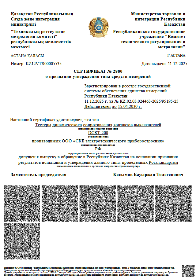 DCRT-200 зарегистрирован в Госреестре Республики Казахстан под №KZ.02.03.024463-2025.95195-25; действ. до 15.04.2030