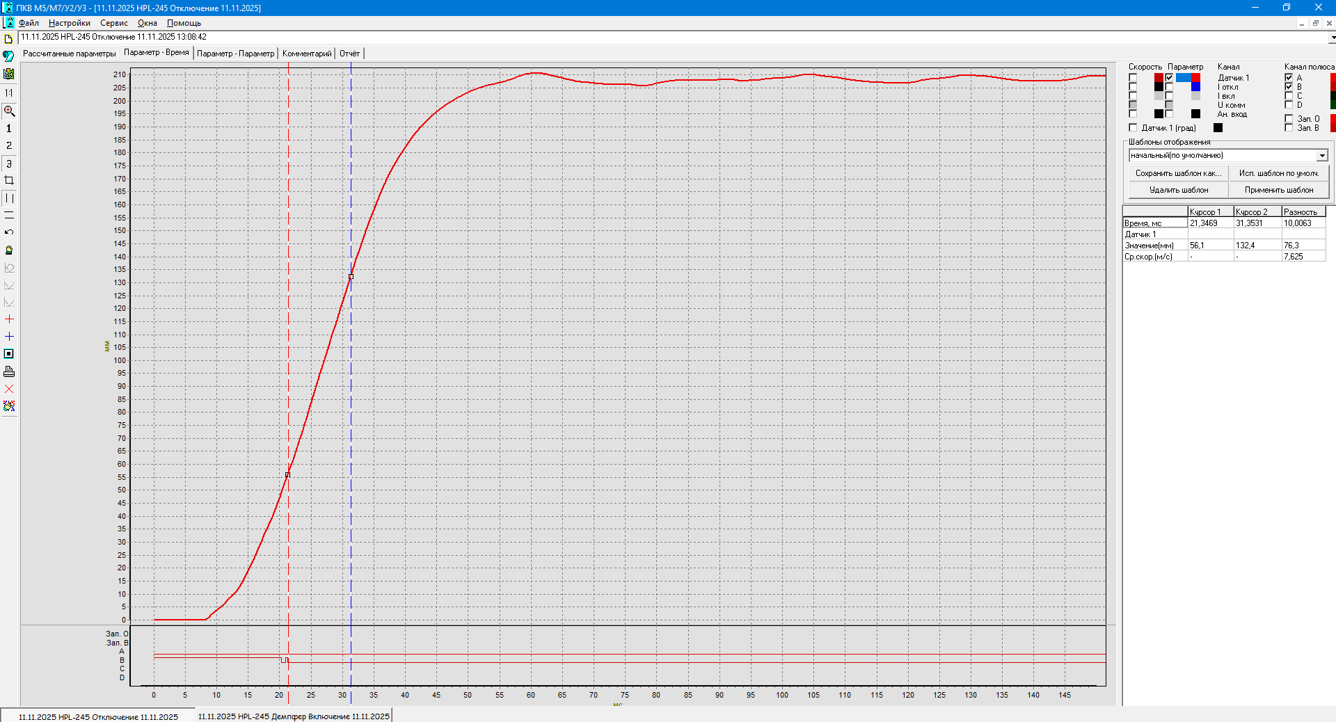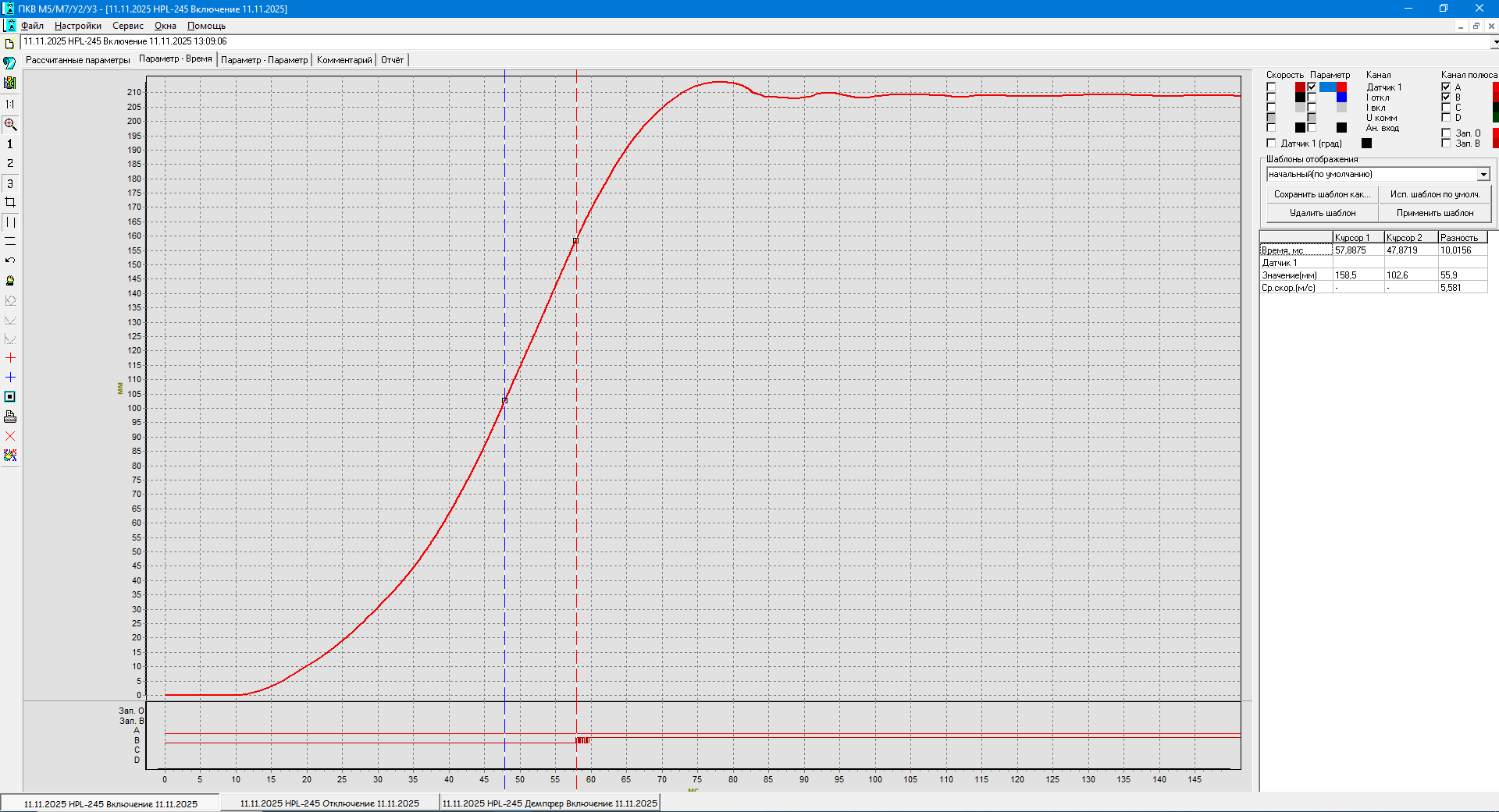 В результате ПКВ/М7 корректно рассчитал параметры, необходимые для диагностики выключателя HPL245B1 с приводом BLG1002A.