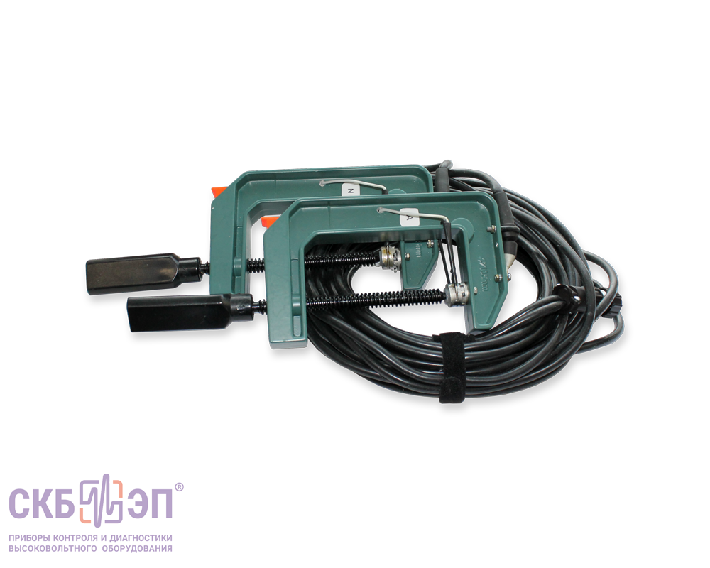 Комплектуется кабелями-удлинителями (длина 3,3 м), которые с одной стороны имеют «крокодил» с токовым и потенциальным контактом для крепления к объекту, а с другой измерительную площадку, к которой присоединяют измерительный кабель прибора с земли / крышки бака.