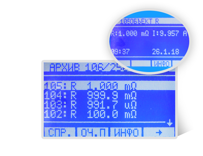 МИКО-7М(А) имеет встроенный архив до 200 измерений для просмотра, копирования или удаления данных, а благодаря возможности выбора объекта на стадии проведения измерения - результаты представлены более систематизировано, что облегчает взаимодействие с архивом.