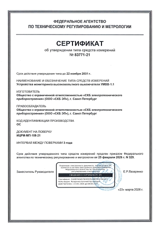 Новая разработка УМВВ-1.1 осуществляет онлайн мониторинг коммутационного ресурса высоковольтных выключателей всех классов напряжения (с общим или раздельным приводом), который рассчитывается на основе степени износа их контактов.