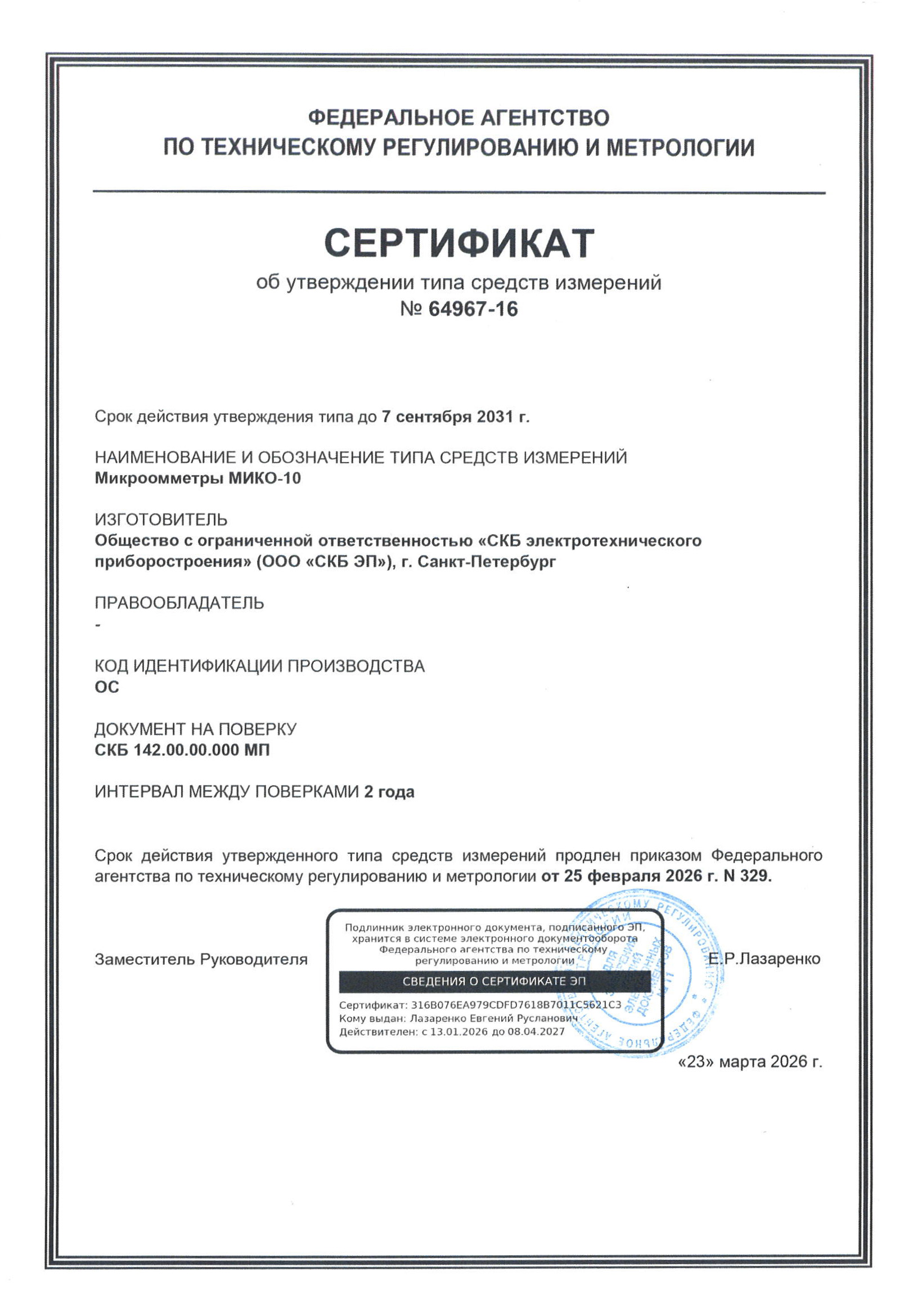 | МИКО-10 | 64967-16 | до 07.09.2031 | 2 года | 2 года |