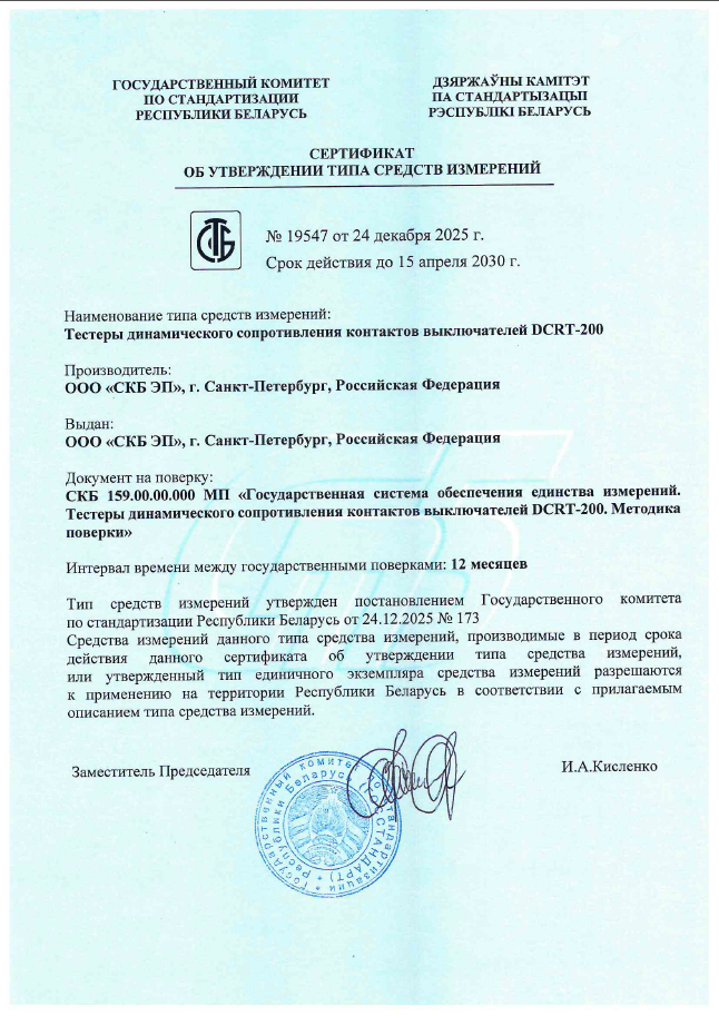 DCRT-200 зарегистрирован в Госреестре Республики Беларусь под № 19547; действ. до 15 апреля 2030 г.