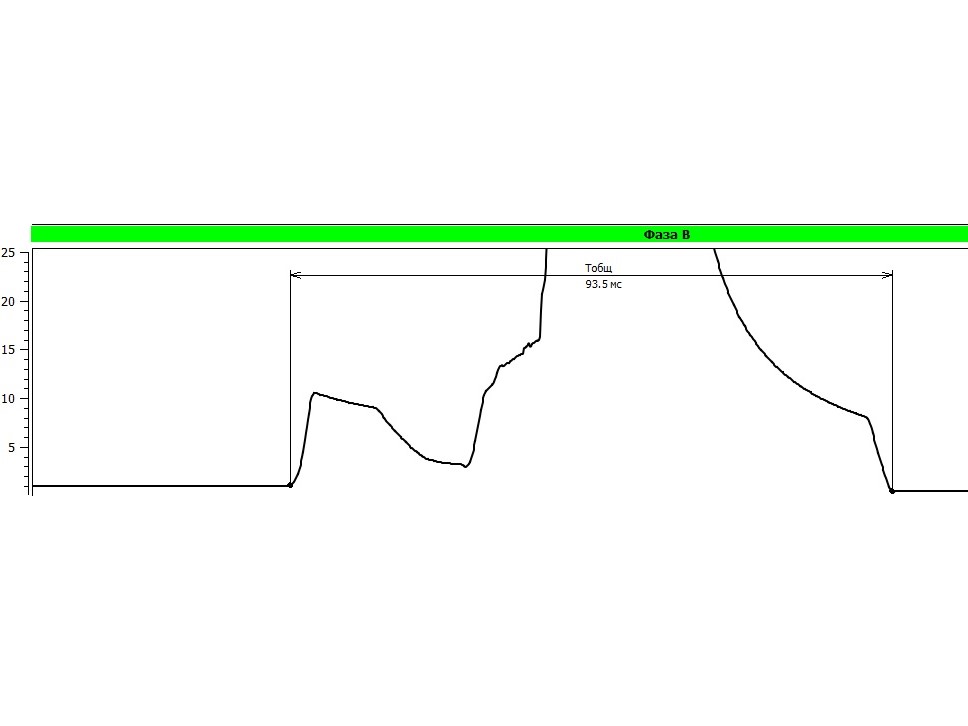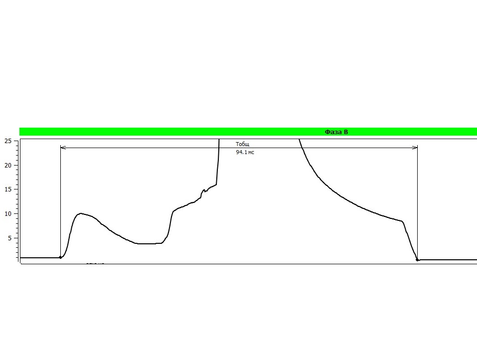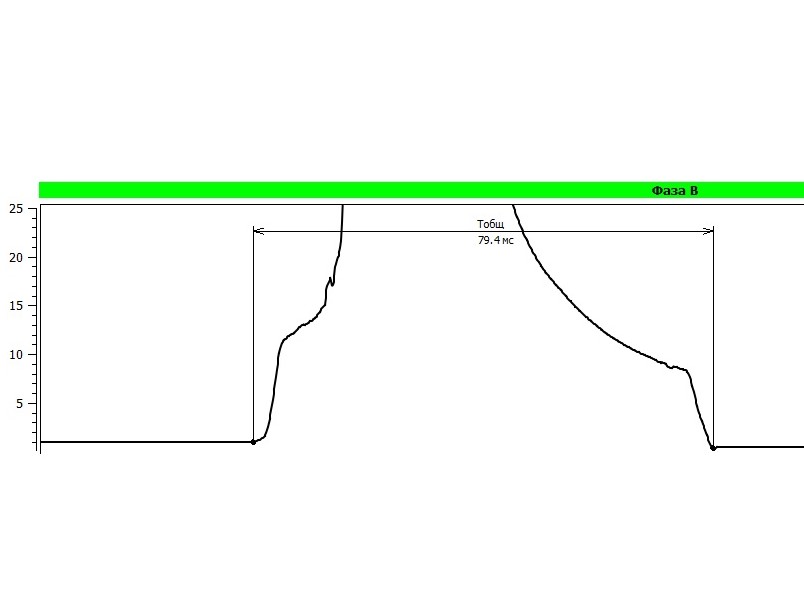 - начальный участок (10-15 мс) демонстрирует состояние контактов в момент замыкания,