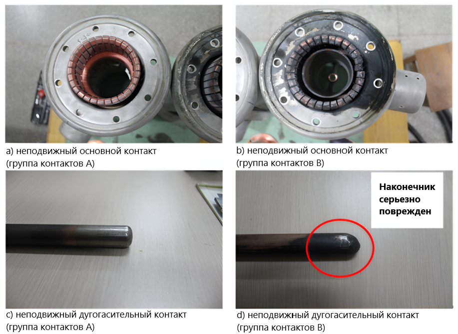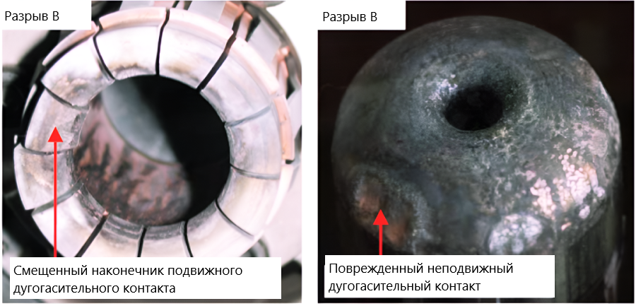 состояния поверхности (эрозию) подвижного и неподвижного контакта дугогасительной камеры.
