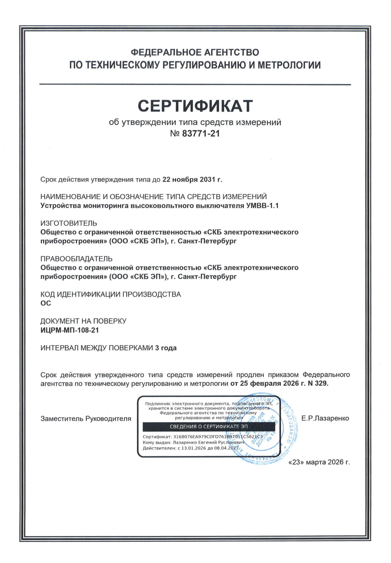 | УМВВ-1.1 | 83771-21 | до 22.11.2031 | 3 года | 3 года |