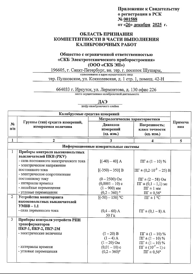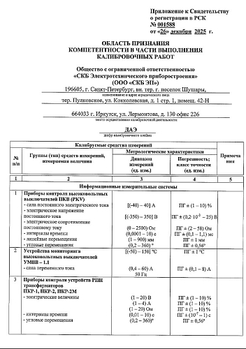 Дополнение №1 к области аккредитации