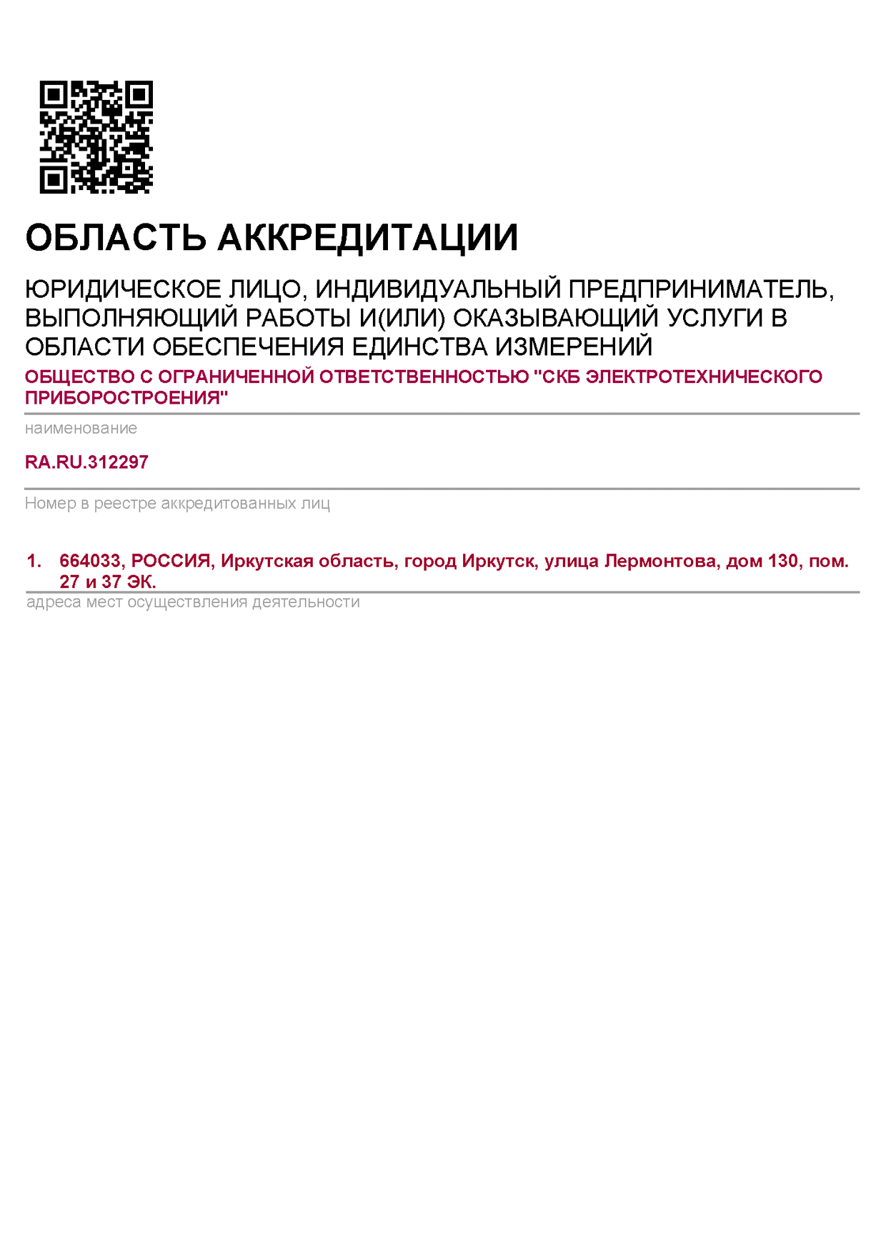 Область аккредитации